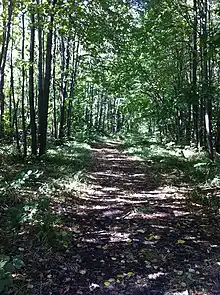 Más del 90 % del parque es terreno forestal. Hay numerosos afloramientos de lecho rocoso expuesto y agua subterránea que con frecuencia sale a la superficie en manantiales.[3] Los distintos hábitats del parque incluyen bosques de pinos y cuencas hidrográficas, pequeños ríos y hondonadas, y varios tipos de bordes de bosques y estepas.[1]