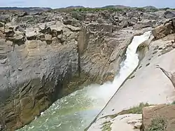 El parque nacional de las Cataratas Augrabies comprende una superficie de 820 km² y se extiende a lo largo del río Orange. La zona es muy árida. La cascada tiene unos 60 metros de altura y es impresionante cuando el río está en crecida. El desfiladero está por debajo de los promedios de las caídas de unos 240 m de profundidad y se extiende unos 18 kilómetros. La garganta es un ejemplo impresionante de la erosión en un basamento granítico.