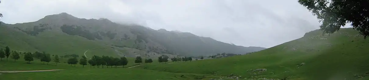 ![]() Vista de la sierra de Aizkorri-Aratz desde el parque natural de Aralar. | ||