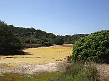 En los estanques que se encuentran al fondo de las playas podemos encontrar una vegetación que es propia de estos ambientes. La vegetación que encontramos en el estanque de Ses Fonts de n'Alis es propia de ambientes salobres donde la sal impone sus condiciones. Encontramos juncos (Juncus acutus), la salicornia (Sarcocornia fruticosa), limonium (Limonium virgatum), y el taray (Tamarix sp.). En el estanque de s'Amarador encontramos una vegetación más propia de ambientes menos salinos, en el cual destaca el cañizo (Phragmites australis). Encontramos la especie Ruppia maritima en ambos estanques.