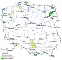 El 9 de mayo de 2009, había 122 parques paisajísticos a lo largo de Polonia, con una extensión total de 26 100 km².