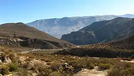 ![]() Quebrada en El Infiernillo, Tucumán. Paisaje típico de las cumbres calchaquíes. | ||