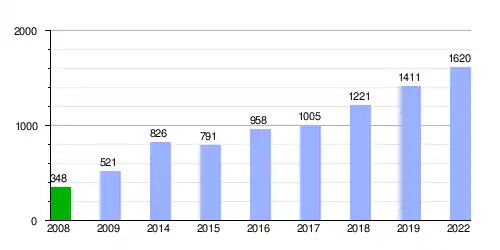 Gráfica de evolución empleo de el parque tecnológico de León[2] [3][4] entre 2008 y 2022
