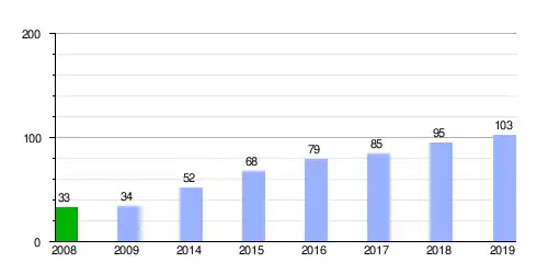 Gráfica de evolución facturación de el parque tecnológico de León[2] [3] entre 2008 y 2019