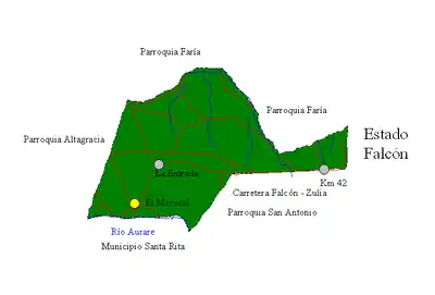 La vía principal es la carretera Falcón – Zulia que la conecta con otras poblaciones del municipio, el estado y el país. Y que constituye el núcleo en torno al cual se han fundado las poblaciones. Otra vía importante es la que lleva a Los Puertos de Altagracia.