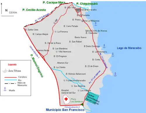 San Trino, El Poniente, Pravia, Cerro Pelado, Santa Clara, Campo Alegre, Día de la Raza, Las Banderas, El Progreso, Chocolate, Barrio Nuevo, San Rafael, Danilo Anderson, Santo Domingo, La Ranchería, Corito, 23 de Enero, La Chinita, Rómulo Betancourt, Ricardo Aguirre.