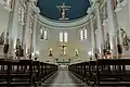 - Vista del interior donde se aprecian los altares laterales y el ábside con el alta mayor
