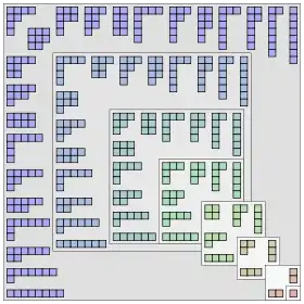 Una representación alternativa de la partición de enteros es el esquema Young. En lugar de una representación con puntos,como el caso anterior, este usa cajas o cuadrados. Así, la partición 5+4+1 viene dada por: