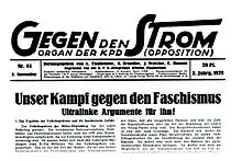 El KPO, con sus dirigentes exiliados en París, continuó la publicación de Gegen den Strom. Políticamente, continuaron la línea previa del KPO, apoyando al Comintern y a Stalin en la Unión Soviética, y criticando únicamente al KPD. Esta posición comenzó a cambiar con el inicio de la Guerra civil española y el desarrollo de la Gran Purga en Rusia. Varios militantes en el exilio viajaron a España, luchando en el bando republicano integrados en las Brigadas Internacionales. Algunos de ellos sufrieron la represión por parte de los estalinistas, destino que compartieron con los militantes españoles del Partido Obrero de Unificación Marxista (POUM).