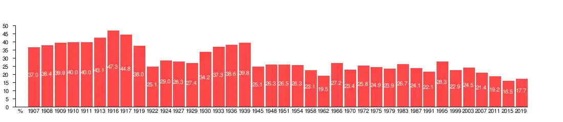 Ha participado en el gobierno por largos periodos de tiempo, hasta 1991 fue la fuerza más votada.[7] Ideológicamente, el partido se sitúa en una posición más moderada que el otro partido de izquierda del país, la Alianza de la Izquierda.