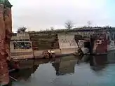 Los escasos restos se confunden con las ruinas de una de las esclusas del Canal del Norte, ambicioso proyecto abandonado hacia 1910. La frustrada idea era convertir varios ríos de la provincia en vías de transporte.