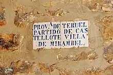 Azulejos haciendo referencia a la provincia de Teruel, al partido de Castellote y a la villa de Mirambel.