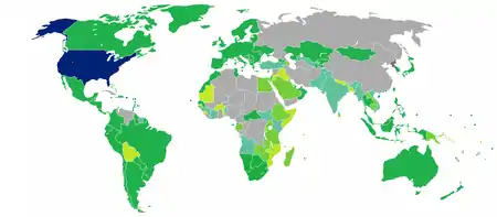 Los requisitos de visa para los ciudadanos de los Estados Unidos son restricciones administrativas de entrada impuestas por las autoridades de otros estados a los ciudadanos de los Estados Unidos. A partir del 11 de enero de 2020, los titulares de un pasaporte de los Estados Unidos pueden visitar 184 países y territorios sin una visa o con una visa a su llegada, lo que lo ubica en el séptimo lugar en términos de libertad de viaje (empatado con Bélgica, Grecia, Noruega y el Reino Unido). ) de acuerdo con Henley Passport Index.[4] Adicionalmente, Arton Capital's Passport Index clasificó al pasaporte de los Estados Unidos en tercer lugar en el mundo en términos de libertad de viaje, con una puntuación sin visa de 165 (empatado con los pasaportes daneses, holandeses, franceses, finlandeses, italianos, luxemburgueses, noruegos, singapurenses, surcoreanos, españoles y suecos) , al 17 de enero de 2019.[5] El gobierno de los Estados Unidos ha prohibido a todos los ciudadanos estadounidenses viajar a Corea del Norte sin un permiso especial, lo que invalida todos los pasaportes estadounidenses para viajar al país.