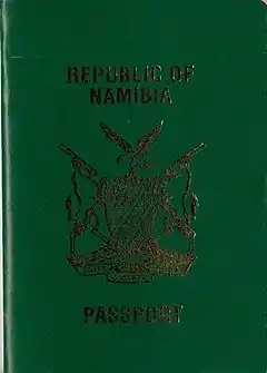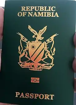 ![]() La portada de un pasaporte biométrico namibio desde 2018. | ||
