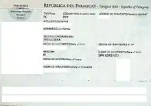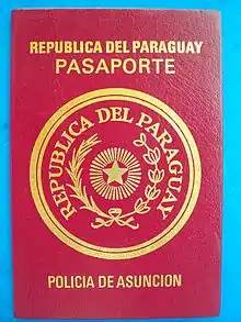 El pasaporte paraguayo es válido para viajar a cualquier parte del mundo, aunque para viajar a ciertos países se requiere visa. El pasaporte paraguayo cumple con los estándares recomendados (tamaño, composición, diseño, tecnología) de la Organización de Aviación Civil Internacional (OACI) establecido por el Documento 9303.[1][2][3][4][5]