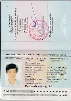 Para la aprobación de un pasaporte los ciudadanos vietnamitas tienen que aplicar en el Departamento de Inmigración Provincial. Esto requiere una Tarjeta de Identificación y cuatro fotos de pasaporte.[2]