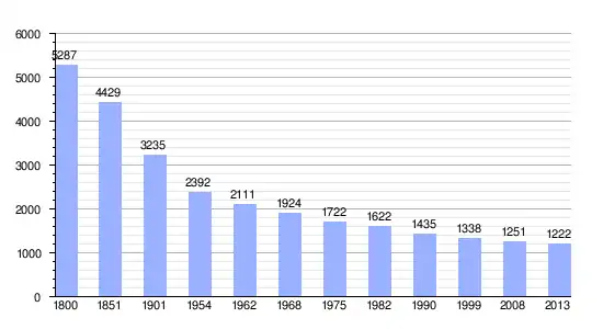 Gráfica de evolución demográfica de Passais-Villages entre 1800 y 2013 |