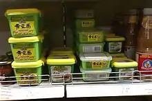 La pasta amarilla de soja está ampliamente disponible en China, así como en las tiendas de comestibles chinas en el extranjero, y viene en paquetes de plástico, embotellados o en latas.