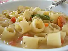 Se llama pasta e fagioli (pronunciación italiana: /ˈpasta e faˈdʒɔːli/; en italiano ‘pasta y alubias’) a un plato sin carne tradicional italiano. Al igual que otros muchos platos italianos famosos como la pizza y la polenta, empezó siendo una receta campesina, debido a sus ingredientes económicos. Actualmente está muy extendido, encontrándose incluso en restaurantes que no sirven comida italiana.