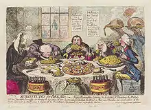 Benjamin Disraeli, conde de Beaconfield, describe en su novela Venetia una cena inglesa de alrededor de 1770 que incluía: