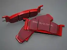- Materiales cerámicos : compuestos de arcilla y porcelana unida a escamas y filamentos de cobre, son un buen compromiso entre la durabilidad de las almohadillas metálicas, el agarre y la resistencia a la decoloración de la variedad sintética. Su principal inconveniente, sin embargo, es que a diferencia de los tres tipos anteriores, a pesar de la presencia del cobre (que tiene una alta conductividad térmica), las pastillas de cerámica generalmente no disipan bien el calor, lo que puede llegar a provocar que las pastillas u otros componentes de la frenada. sistema para deformar. [5] Sin embargo, debido a que los materiales cerámicos hacen que el sonido de frenado se eleve más allá del oído humano, parecen excepcionalmente silenciosos. [10]