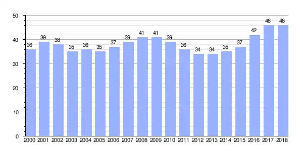 Gráfica de evolución demográfica de Pastoriza a Nova entre 2000 y 2018 |