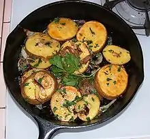 Las patatas lionesas son un plato francés consistente en rodajas de patata fritas en sartén con cebollas cortadas finas, salteadas en mantequilla con perejil y posiblemente otros condimentos. Para obtener un resultado óptimo, las patatas se cuecen parcialmente antes de saltearlas.
