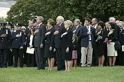 El Presidente George Bush celebrando el Patriot Day en un acto solemne en recuerdo de las víctimas.