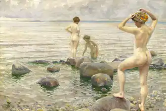 - Tres jóvenes bañándose, c. 1916. Óleo sobre lienzo,