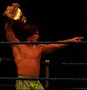 - Springboard enzuigiri a un oponente sentado en la tercera cuerda