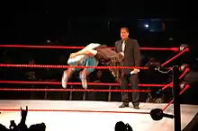 - Backflip drop, a veces a un oponente arrinconado[1]