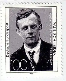 Paul Robert Schneider (Pferdsfeld, hoy Bad Sobernheim, 29 de agosto de 1897 - Campo de concentración de Buchenwald en Weimar, 18 de julio de 1939) fue un pastor evangélico alemán, miembro de la Bekennende Kirche y víctima del régimen nacionalsocialista. Llamado el "Prediger von Buchenwald (Predicador de Buchenwald)". Fue detenido por rehusarse a hacer el saludo nazi en la instrucción de confirmaciones, por distribuir material crítico a las políticas racistas del régimen y por dictar sermones en los que llamaba a rechazar a Hitler.[1]