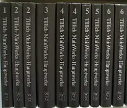 Entre el público en general, Tillich es más conocido por sus obras The Courage to Be (1952) y Dynamics of Faith (1957), que introdujo temas de teología y cultura a un público general. . En teología académica, es más conocido por su importante obra de tres volúmenes Teología sistemática (1951-1963), en la que desarrolló su "método de correlación", un enfoque que explora los símbolos de la revelación cristiana como respuestas a los problemas de la existencia humana planteados por el análisis existencial contemporáneo.[2][3] A diferencia de las principales interpretaciones del existencialismo que enfatizaban la prioridad de la existencia sobre la esencia, Tillich consideraba el existencialismo "posible solo como un elemento en un todo más grande, como un elemento en una visión de la estructura del ser en su bondad creada, y luego como una descripción de la existencia del hombre dentro de ese marco”.[4]