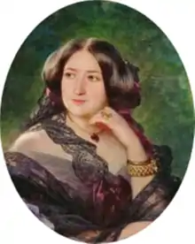 ![]() Retrato de Pauline de Bassano, por Franz Xaver Winterhalter (detalle de La Emperatriz Eugenia rodeada de sus damas de compañía, 1855). | ||