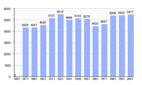 Gráfica de evolución demográfica de Pavia di Udine entre 1861 y 2001 |