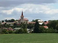 Se encuentra ubicada en el sur de la región, sobre la zona suroriental de los montes Sudetes, a poca distancia de la orilla del río Morava —un afluente izquierdo del Danubio— y de la frontera con las regiones de Moravia-Silesia y Zlín.[1]