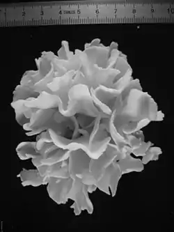 Colonias compuestas por frondas delgadas, de no más de 4-5 mm de grosor, contorsionadas, y bifaciales, que se disponen a un lado y otro de las expansiones foliares; pudiendo tener las bases de las ramas espesas. Esta especie solo presenta esta forma de crecimiento, lo que puede determinar que solo pueda estar presente en hábitats específicos. Los coralitos son finos, superficiales, y están ordenados en hileras irregulares paralelas a los márgenes de la fronda, separadas por 3 o 4 mm. Los septos tienen menos de 1 mm de diámetro, y están dispuestos al ras de la superficie del corallum.[3]