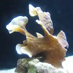 Los pólipos se expanden solo por la noche.[4] De color café pálido a café verdoso y, en ocasiones, presentan el margen blanco.