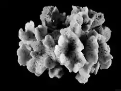 Las colonias forman estructuras submasivas, casi siempre con apéndices frondosos o en forma de ramas, o son masas de hojas angulares y proyecciones en anastomosis. Las hojas tienen entre 3 y 10 mm de espesor, y los cálices entre 2 y 3 mm de diámetro.[3]