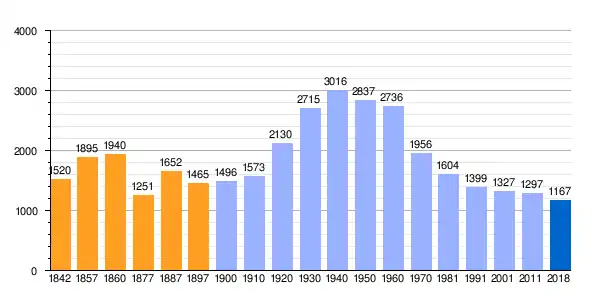 Población de derecho (1842-1897, excepto 1857 y 1860 que es población de hecho) según los censos de población del siglo XIX.      Población de derecho (1900-1991) o población residente (2001-2011) según los censos de población del INE.      Población según el padrón municipal de 2018 del INE.