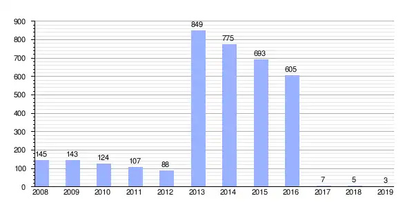 Deuda viva del Ayuntamiento de Paymogo en miles de Euros según datos del Ministerio de Hacienda y Ad. Públicas.[4]