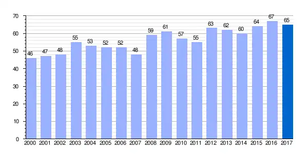 Gráfica de evolución demográfica de Payueta[1] entre 2000 y 2017 |