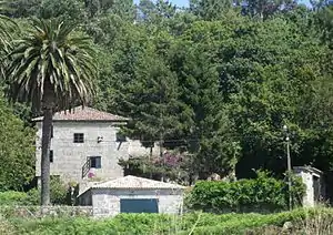 La propiedad se encuentra rodeada por un muro de mampostería. En el interior de finca de 30.000 m², existe una capilla , una bodega, un hórreo, un pilón y dos minas de agua. La capilla tiene entrada con arco de medio punto. Al remate de la fachada una espadaña rematada a su vez por una cruz de piedra.