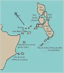 El archipiélago fue conectado a la costa de Argelia después de la expulsión de los españoles en 1529 por Jeireddín Barbarroja, formando una península artificial en la que se encuentra el dique y la entrada actual al puerto de Argel.[4]