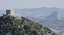 ![]() Peñón de Zaframagón y Vía Verde desde el observatorio de aves. | ||