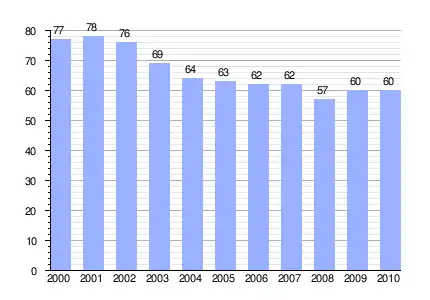 Población de derecho (2000-2010) según los censos de población del INE a 1 de enero de cada año.[4] |