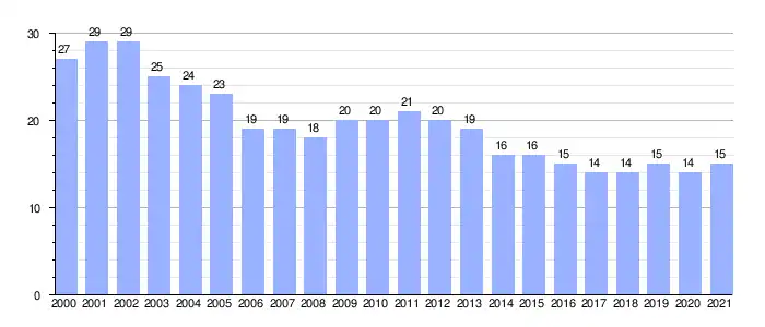 Gráfica de evolución demográfica de Peñalba de Santiago[5] entre 2000 y 2021 |