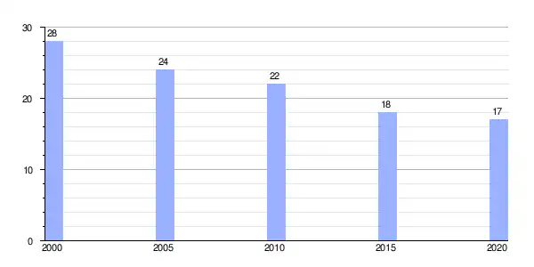 Gráfica de evolución demográfica de Peñamil entre 2000 y 2020 |