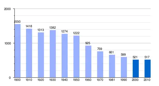 Gráfica de evolución demográfica de Peñarroya de Tastavins (municipio) entre 1900 y 2010 |