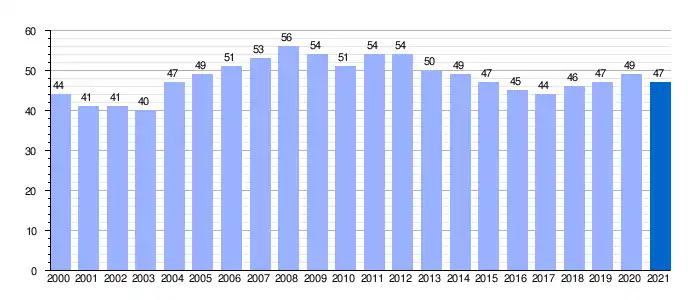 Población residente (2000-2020) según los censos de población del INE. Población según el padrón municipal de 2021 del INE. |